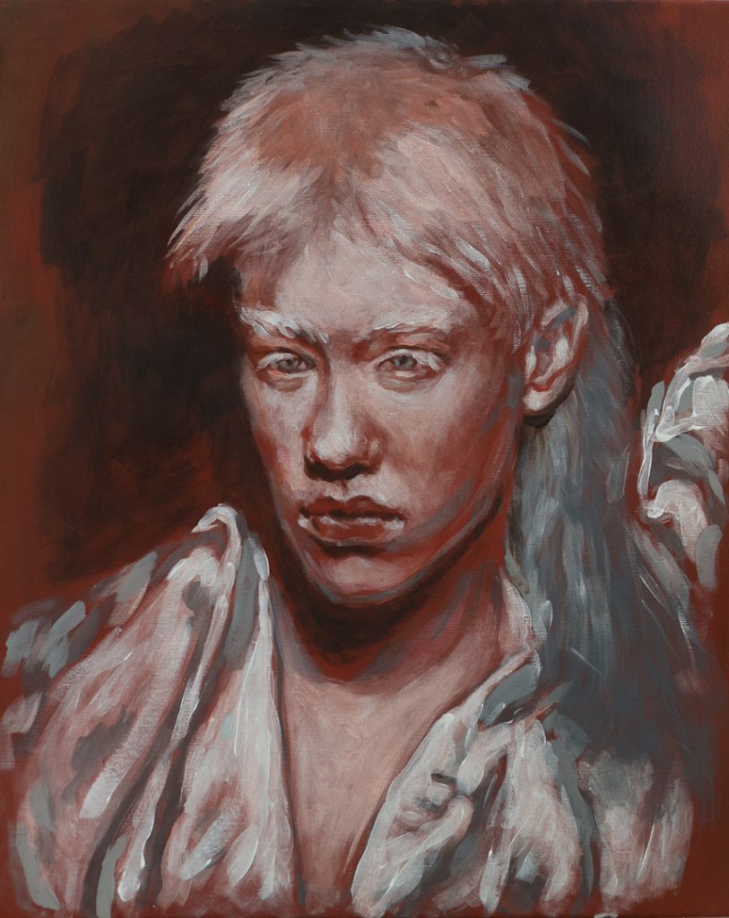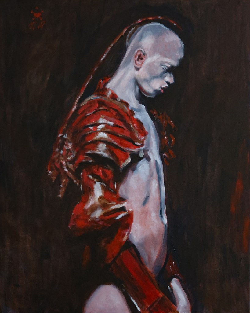 My painterly practice, much like my previous work in other media, explores themes of inner uncertainty and the fragility of the individual within an environment defined by aggression and the gaze of the “Other.” The paint is often applied onto dark underpaintings or grounds, where the gradual layering of transparent glazes—leveraging their unique optical properties—allows me to achieve significant visual depth.