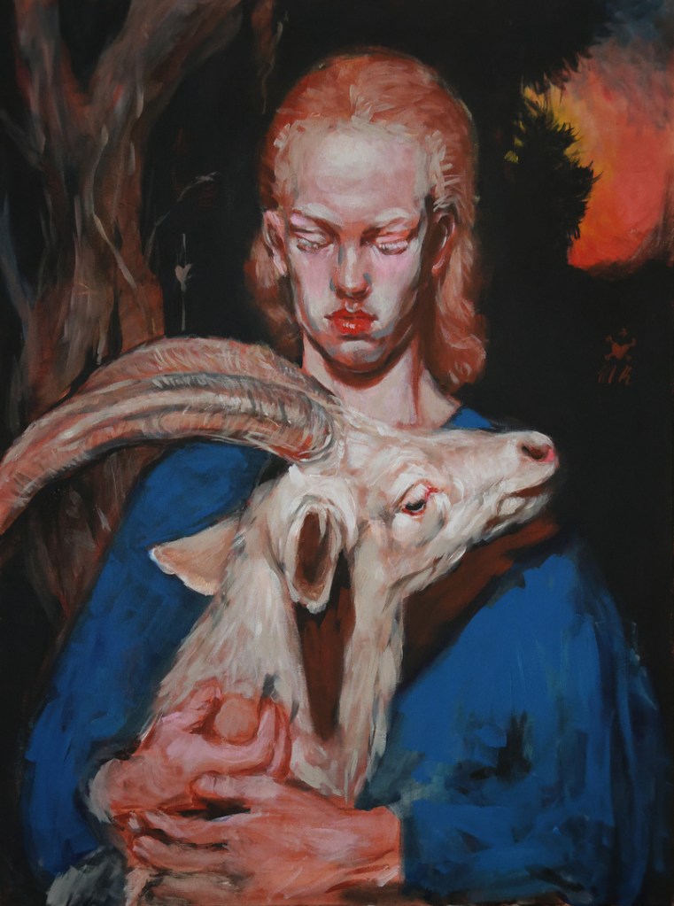 Moja maliarska tvorba, podobne ako moja doterajšia práca v iných médiách, tematizuje vnútornú neistotu a krehkosť jednotlivca v prostredí definovanom agresiou a pohľadom toho druhého. Maľba je často nanášaná na tmavé podmaľby či šepsy, kde postupné vrstvenie farieb v transparentných lazúrach umožňuje maliarovi vďaka ich optickým vlastnostiam dosiahnuť vizuálnu hĺbku. Postavy so svojou príznačnou bledosťou viditeľne sa vyčleňujúce zo všeobecných stereotypov nepôsobia ako aktéri deja, ale skôr ako bytosti v stave meditácie či náhodného vyrušenia vo vlastnom súkromnom priestore. Často ide o androgýnne subjekty s nejednoznačnou rodovou identitou, zachytené v období dospievania. Subjekty sú zobrazované izolovane na pozadí otvorených krajín s nekonečnou vodnou hladinou. Vrhnuté do priestoru bez možnosti úkrytu čelia hrozbe objektifikácie. Súčasne však diváka pozývajú do svojich idealizovaných imaginárnych svetov, v ktorých nachádzajú jediné útočisko a pocit bezpečia. Tieto queer aspekty a genderová fluidita sú skúmané prostredníctvom voľného narábania s klasickými maliarskymi technikami.