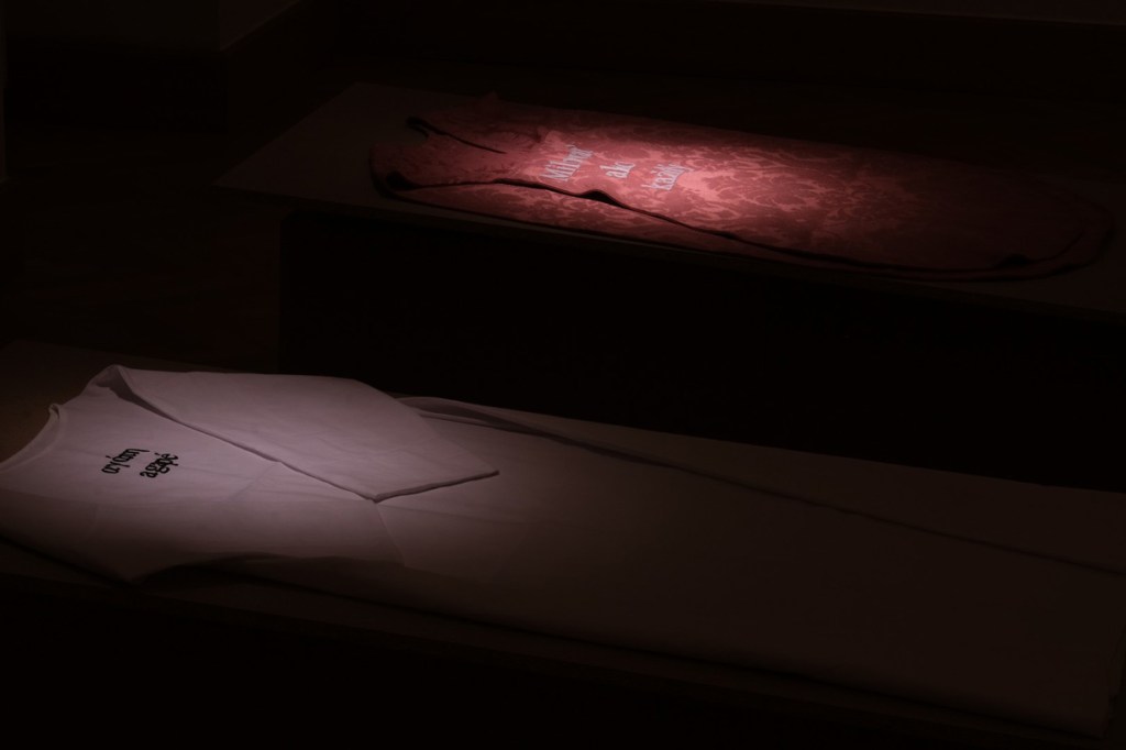 The sphere of intimacy intersects with the public sphere here and Rovňák takes interest in the ethical and political aspects of love, as if it was a textile book with embroideries of ancient techniques of taking care of ourselves and at the same time, he uses this meditative technique to produce them. His work To Love Like Everyone Else (2023) is a follow-up to his earlier Corsets (2001) and reopens the matter of the position of the LGBTQI community in Slovakia, which has been historically not just ignored, but actually bullied despite them just demanding basic rights for themselves.