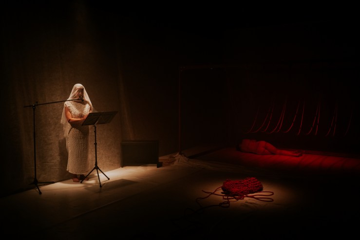 Fotoset Kataríny Baranyai z premiéry performancie v Záhrade-CNK v Banskej Bystrici v apríli 2023 / Photoset by Katarina Baranyai from the premiere of the performance in the Garden-CNK in Banská Bystrica in April 2023