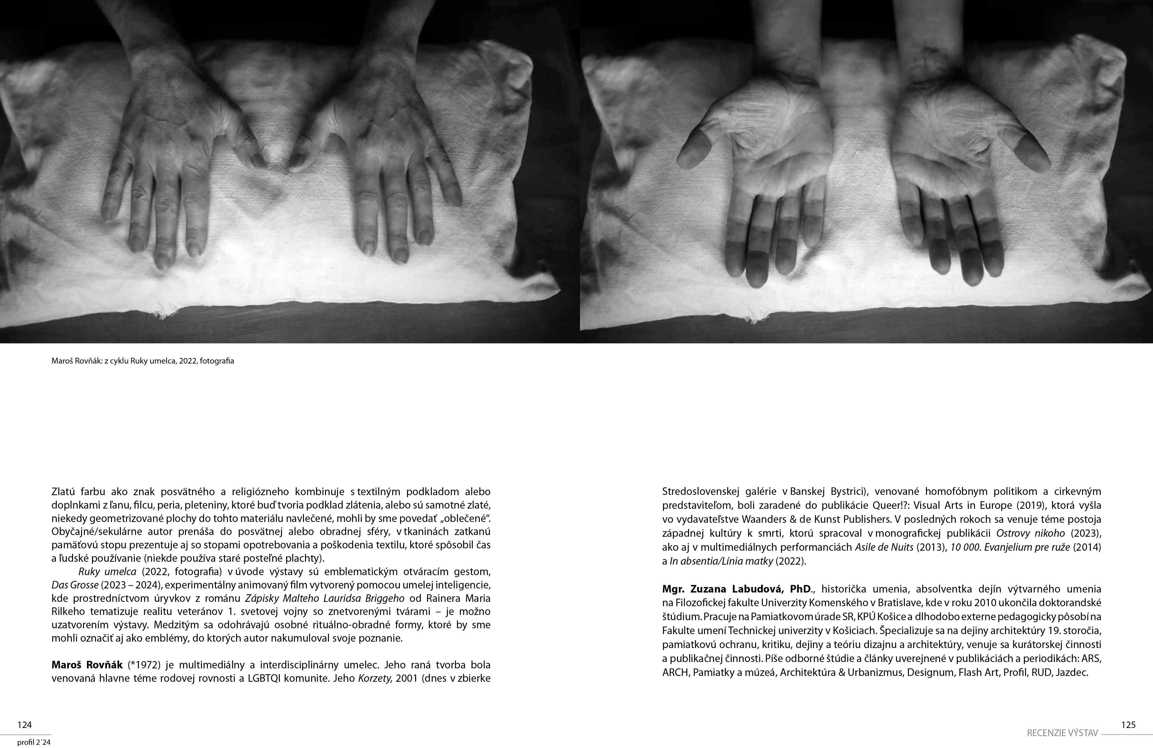 Maroš Rovňák is a multimedia artist who deals with the topic of gender equality in the long term from the viewpoint of recognising LGBTQI rights, as well as with the topics of memory and the attitude of Western culture towards death. Zuzana Labudová reviews his solo exhibition in the Nitra Gallery (curated by Ivana Komanická), which the artist named To Love Like Everyone Else (15 March – 26 May 2024).