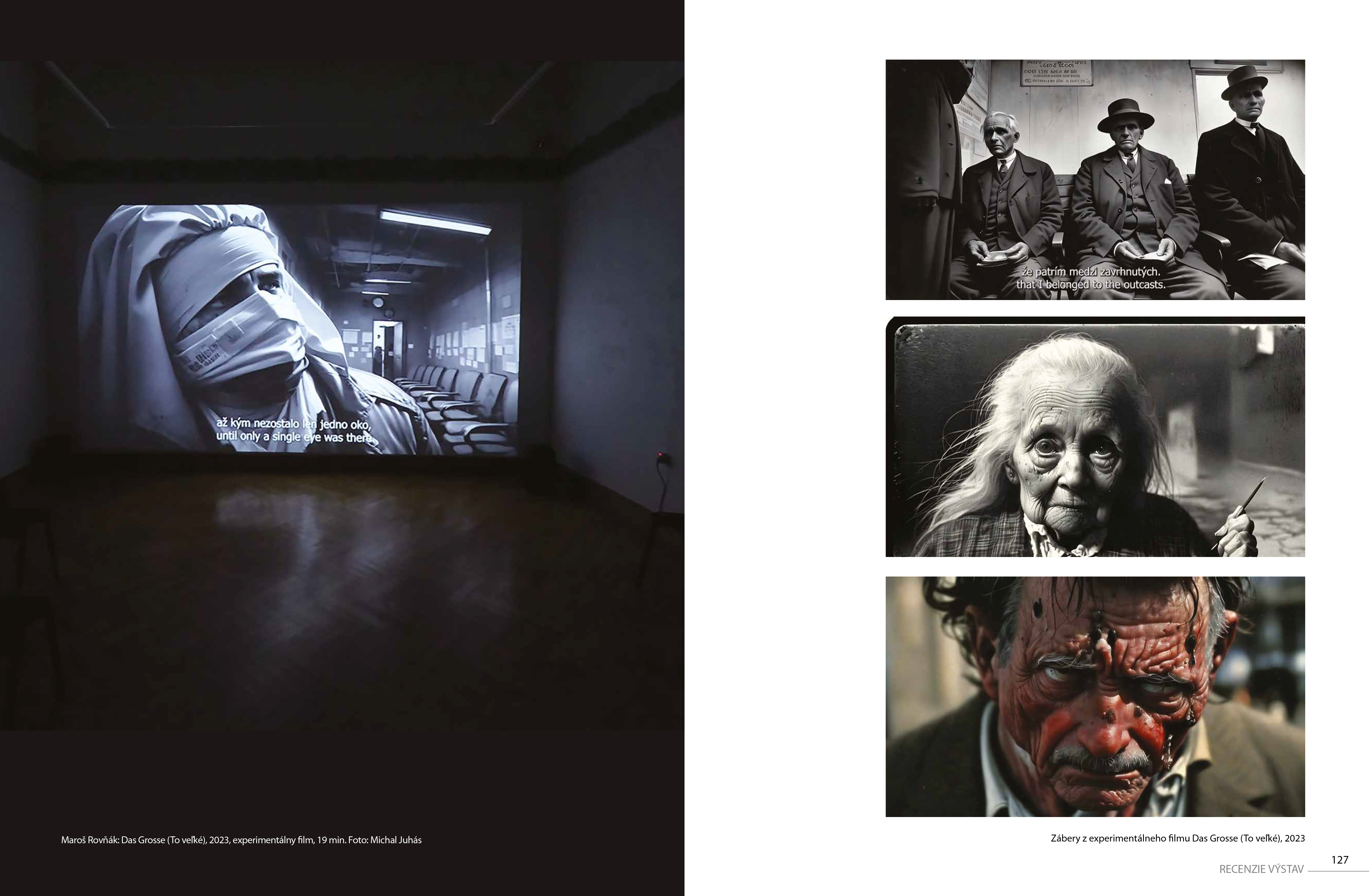 Dynamika medzi domesticitou a prijatím a tiesnivým, tým, čo zostáva skryté, no za istých okolností vypláva na povrch, kulminuje v Rovňákovom novom experimentálnom filme Das Grosse (2023), ktorý vytvoril pomocou umelej inteligencie na základe Rilkeho románu, v ktorom autor deklamuje útržky zo Zápiskov Malteho Lauridsa Briggeho.