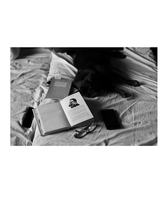 Zatiaľ čo textovú časť tvoria úvahy, postrehy, citáty a mikroeseje tematizované smrťou, fotografie predstavujú vizuálny denník. Táto séria autoportrétov, zátiší a kompozícií sleduje intímnu líniu umeleckého výskumu v rámci celého projektu. Pendantom ku knihe je dvojica zošitov s poznámkami. Vnímam ich ako samostatné umelecké diela – grafické a kresebné záznamy, ktoré dokumentujú samotný proces vývoja a myslenia v projekte Ostrovy nikoho.