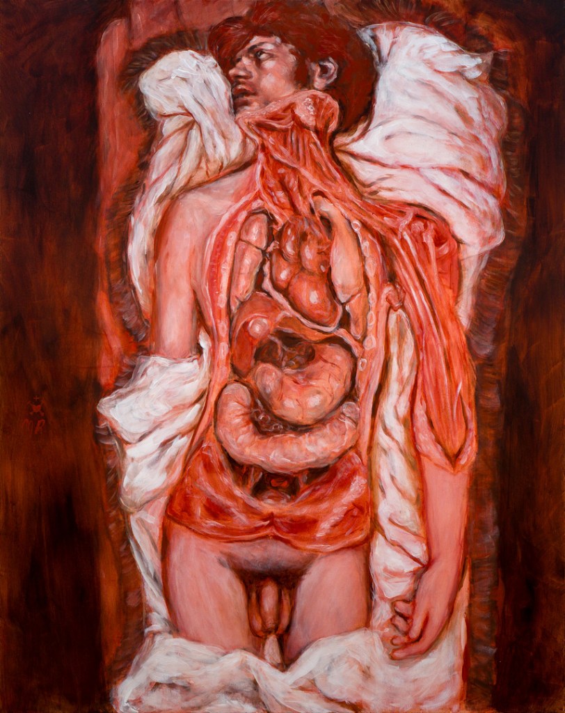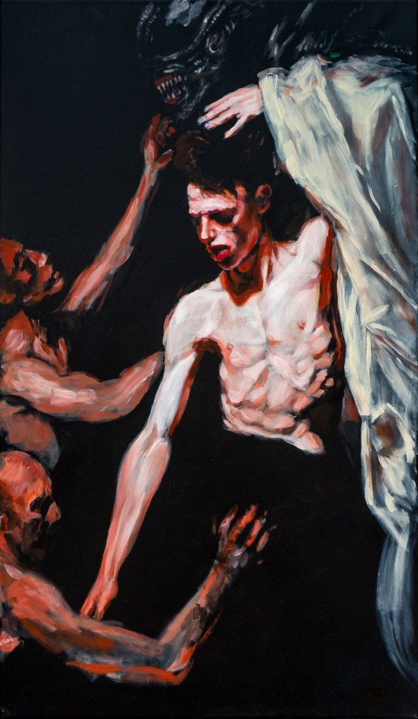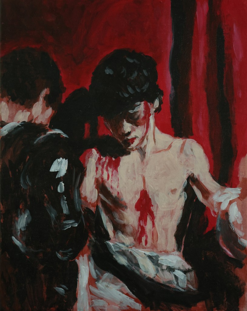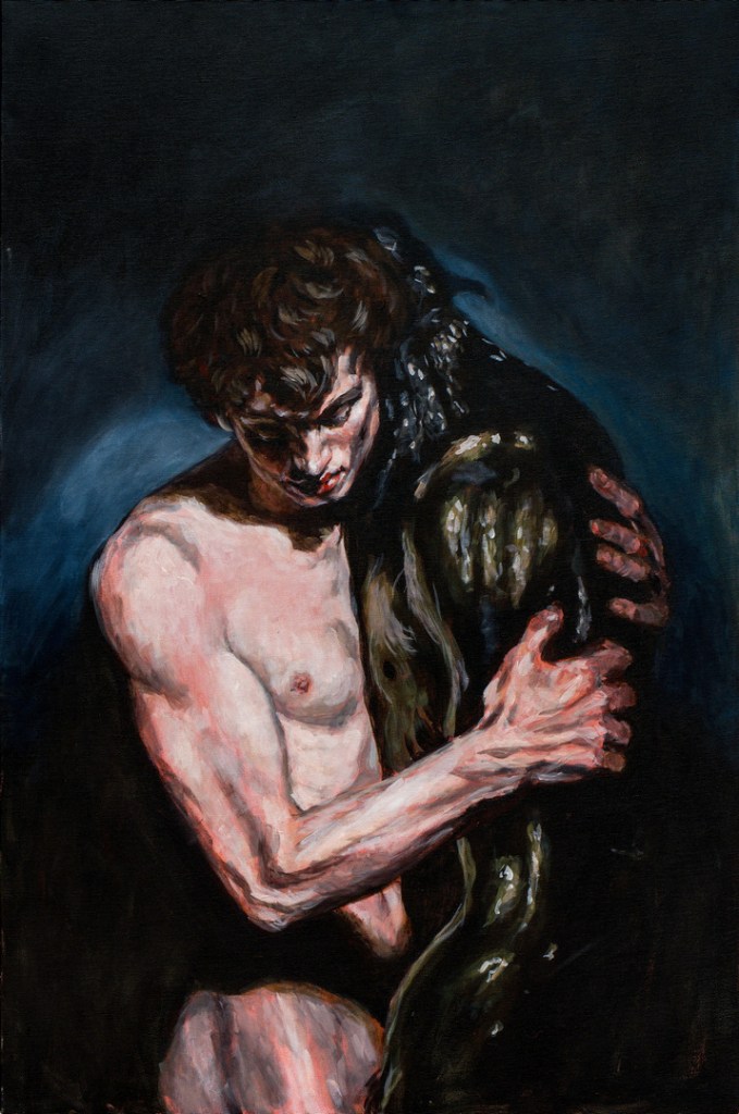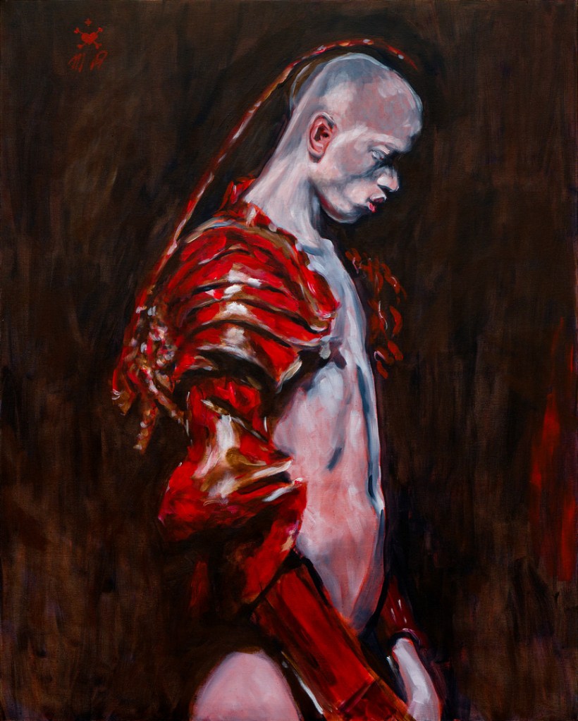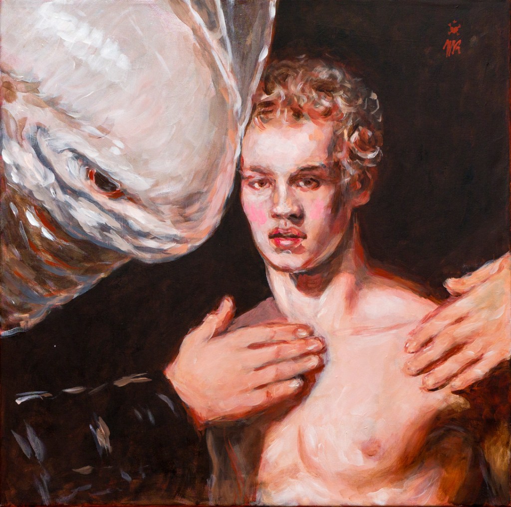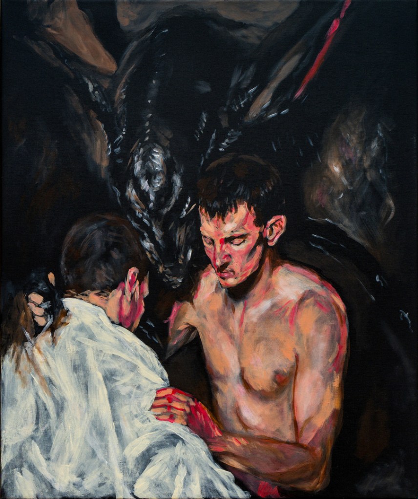 Tieto queer aspekty a genderová fluidita sú skúmané prostredníctvom klasických maliarskych techník. Využívam tmavé šepsy či podmaľby, na ktorých sa prostredníctvom niekoľkých vrstiev transparentných lazúr pokúšam dosiahnuť vizuálnu hĺbku.