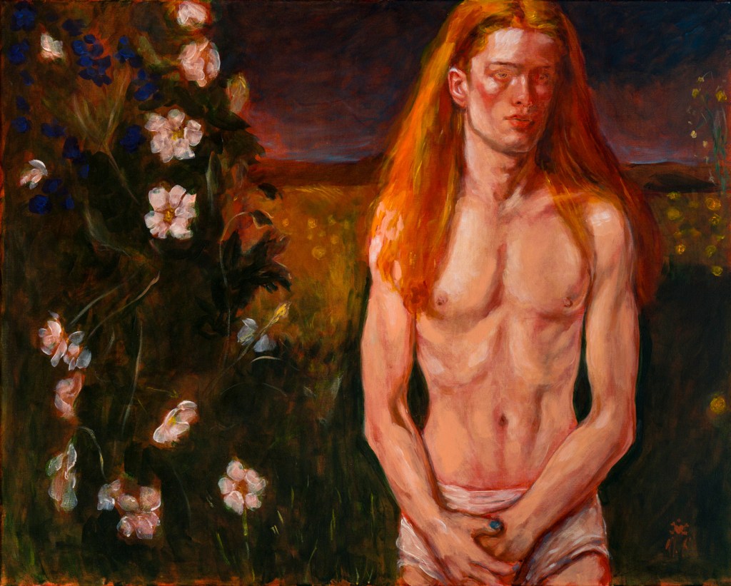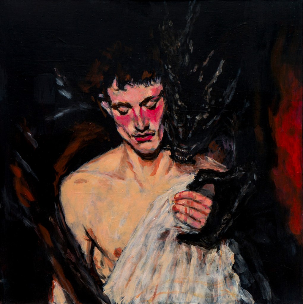I explore these queer aspects and gender fluidity through the lens of classical painting techniques. Utilizing dark primers and underpaintings, I apply multiple layers of transparent glazes to leverage their optical properties and achieve a profound visual depth.